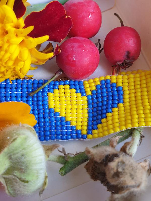 Браслет із бісеру з орнаментом. . Розмір брасета регулюється, вишита частина 12 см, загальна довжина 20 см. . 20% від продажу перераховую на ЗСУ Ціна: 280 грн