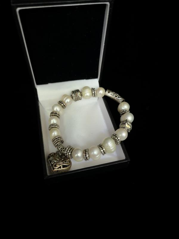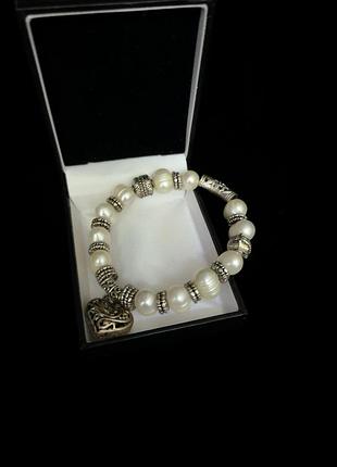 🌾Браслет з великими натуральними перлинами. Прикраси з перлинами залишаються актуальними. Браслет на резинці, перлинки великі, приблизно 12 мм. Браслет прикрашає підвіска у формі сердечка. Хороший вінтажний стан, перлини без пошкоджень.