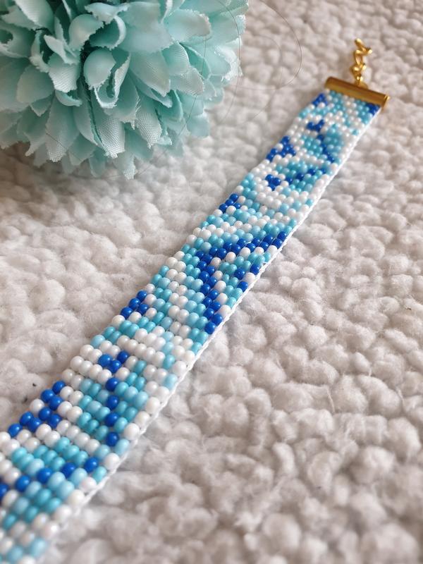 Браслет із бісеру 💙 . Блакитний ніжний орнамент підкреслить вашу індивідуальність . Ширина 1.8 см Довжина виробу 16 см, можна подовжити за рахунок застібки з ланцюжком . Вартість: 200 грн . Є доставка за кордон 20% від кожного виробу перераховую на підтримку ЗСУ