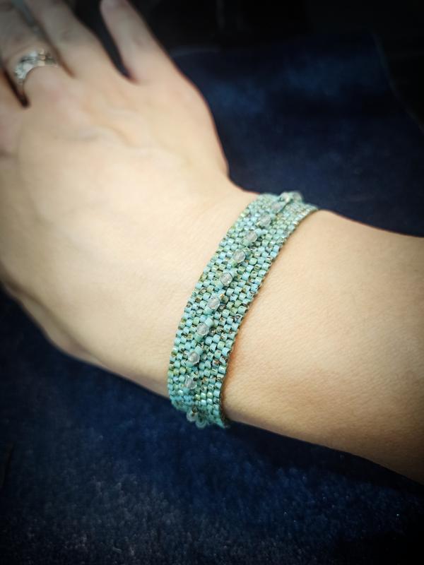 Елегантний браслет ручної роботи - бісер та натуральний лабрадор. Довжина 17 см. Можна зробити будь-яку. Застібка - магніт. Тональність під бірюзу.
