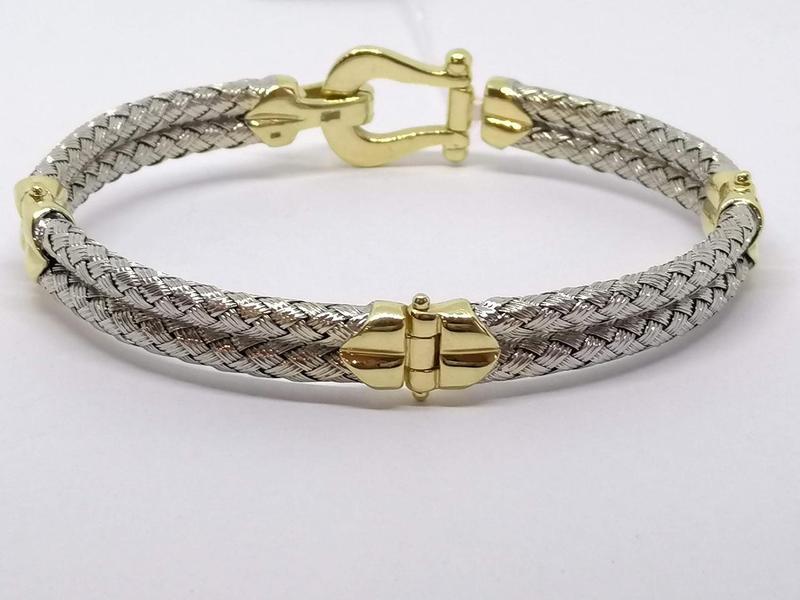 Браслет жесткий из лимонного золота и белого золота 585 пробы Средний вес изделия - 22,37 г Вес конкретного изделия уточняется при подтверждении заказа