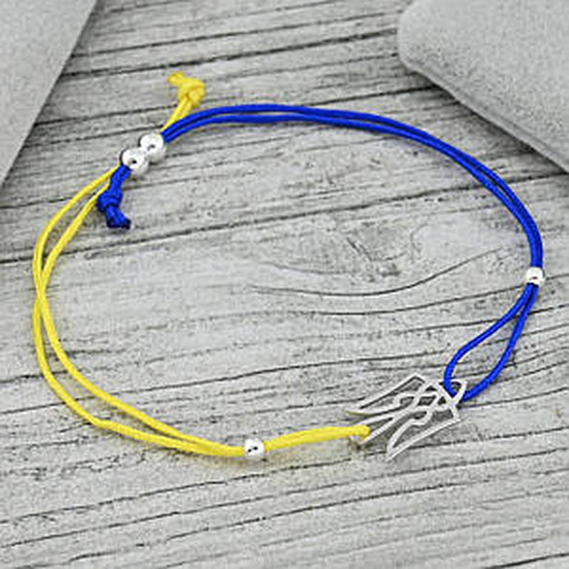 Срібний оберіг Тризуб Україна жовто синя нитка ширина 2 мм довжина 20.