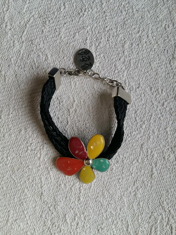 Очень интересный браслет с металлическим цветком, покрытым разноцветной эмалью. Очень качественно сделан, смотрится стильно, подойдёт подо всё. Размер регулируется