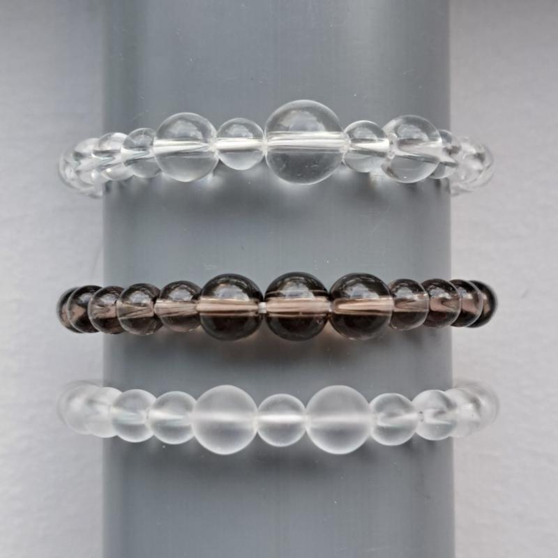 браслет на резинке 17-18 см, из прессованных камней, фурнитура металлическая = жемчуг (им), стеклянные бусины 8 мм ( 120 грн) = горный хрусталь матовый и прозрачный , основные бусины 6 мм, центральные 8-10 мм (175 грн) = раухтопаз, основные 6 мм, центральные 8 мм ( 175 грн) готовые изделия, возможны варианты на ваш вкус и размер