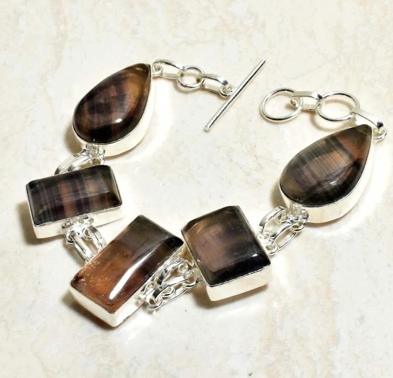 браслет с натуральным флюоритом ручная работа индийских мастеров серебрение проба 925 размер браслета 19-20 см
