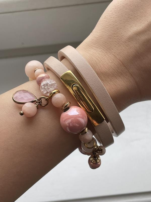 Пара браслетів (один - шкіряний, другий - з бусин на резинці). Дуже делікатні. Стан - ідеальний. Купляли закордоном.