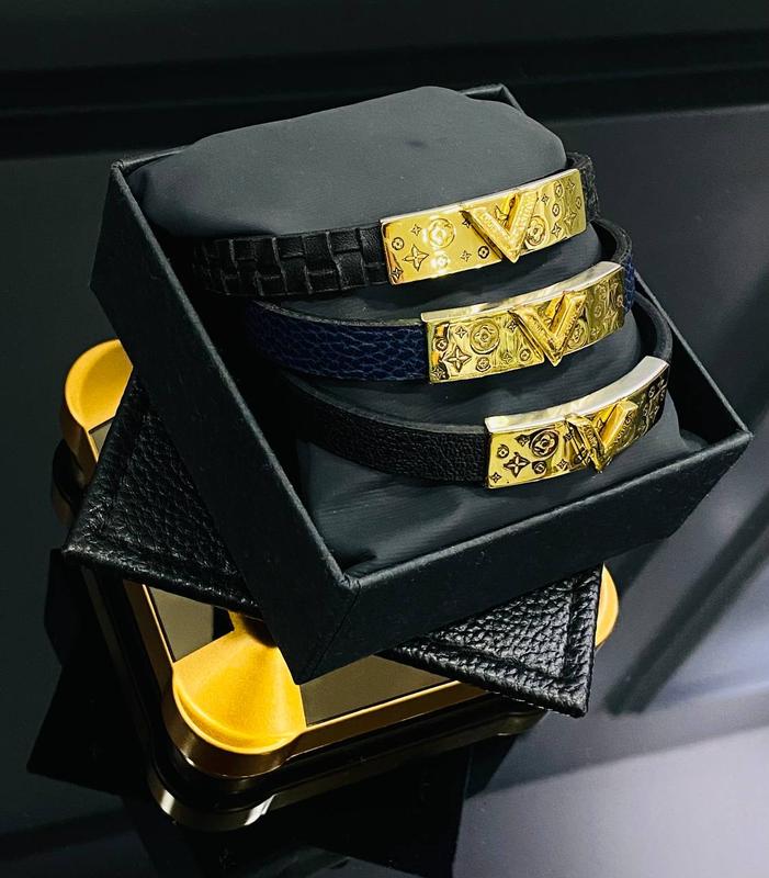 Браслет кожаный черный женский мужской в стиле louis vuitton браслет луи витон