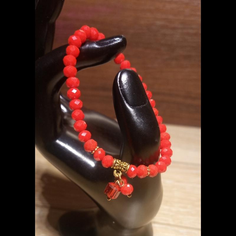 браслет из чешского храсталя с подвеской. на резинке. фурнитура бижутерный сплав золотого цвета. на руку обьемом 17.5/18см.