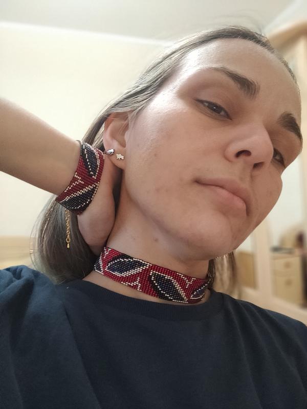 Комплект колье и браслет. Чешский бисер. Возможно сделать по заказу в других цветах.