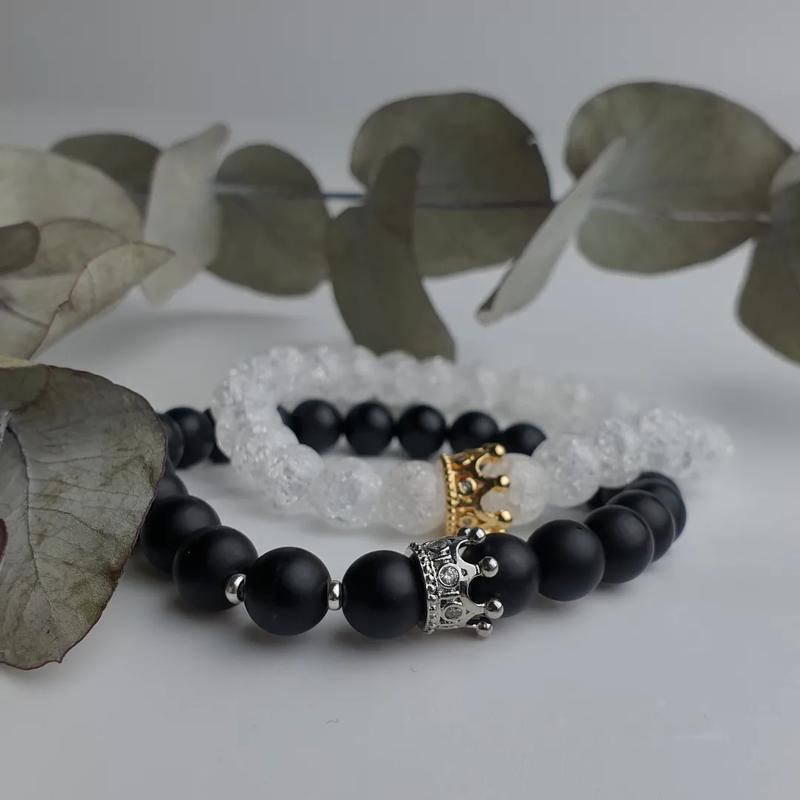 Парные браслеты 🤍❤ Нежный горный хрусталь, и могучий, черный шунгит🌙