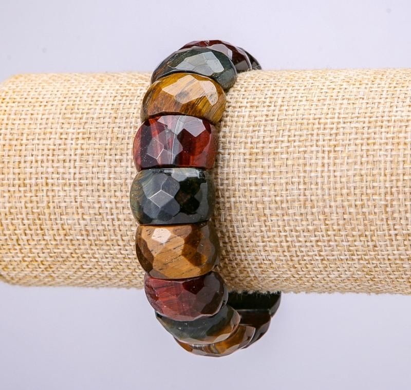 Браслет на резинці граненное ланка Соколиний, Тигровий, Бичачий очей d-20х12мм, обхват-18см (+-)