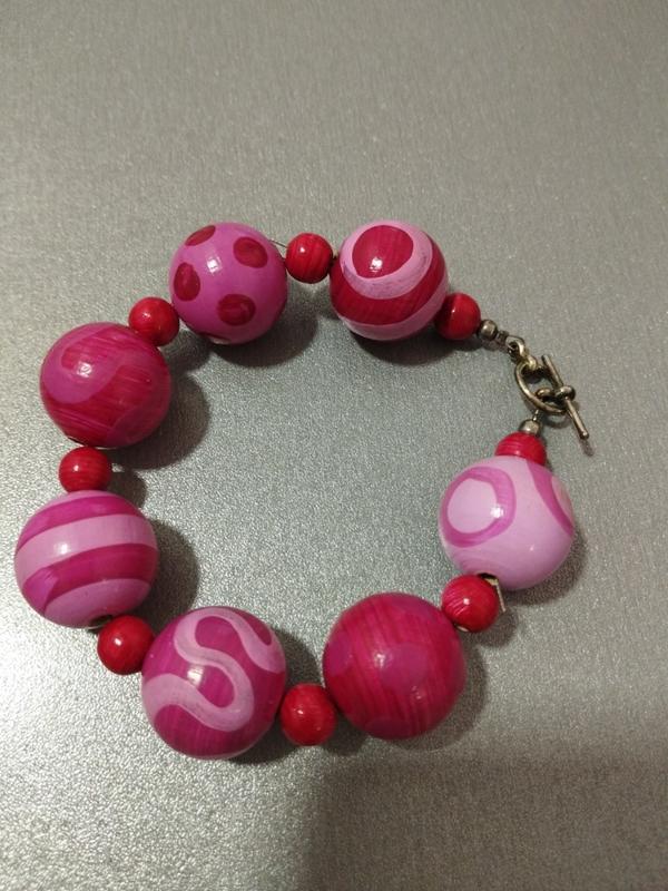 Дерев'яний браслет,пофарбований у яскраві рожеві кольори.Для яскравих панянок.