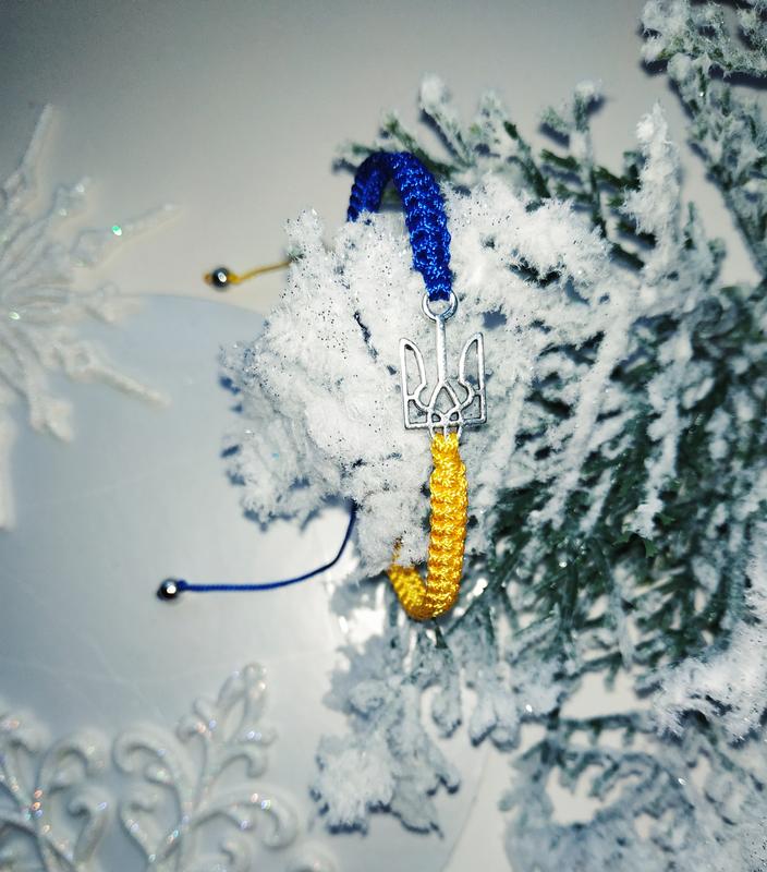 Браслет з тризубом в синьо-жовтих кольорах. Можна виконати в будь-якому кольорі та необхідною довжини.