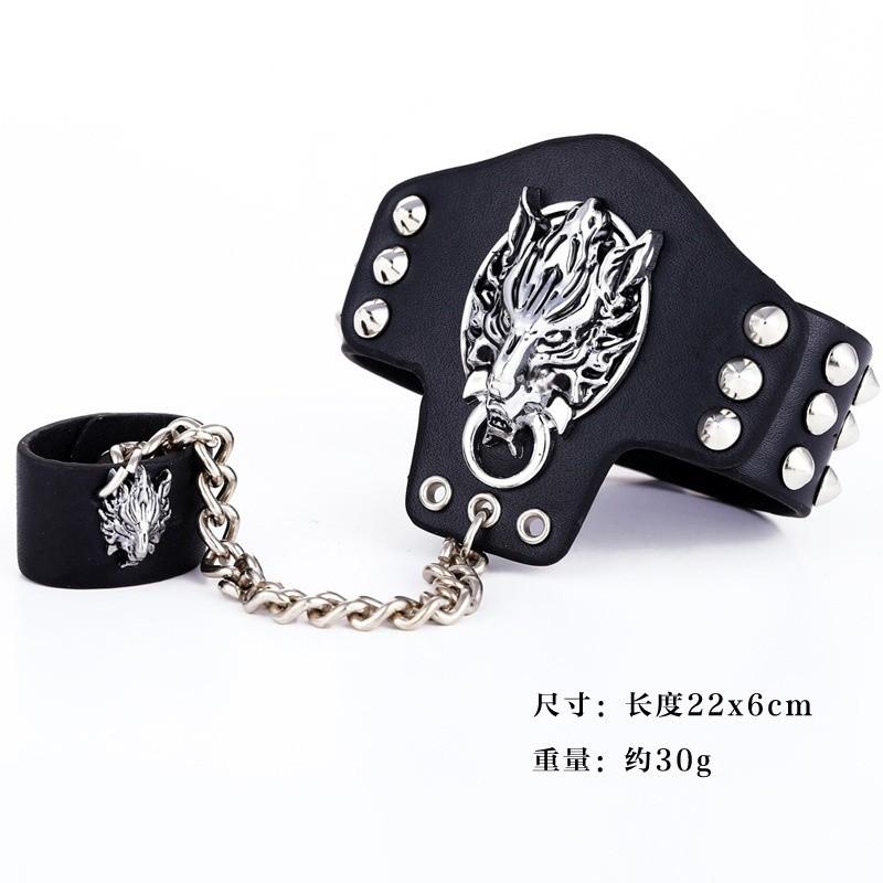 Шкіряний браслет з головою вовка та каблучкою довжина максимальна 20 см
