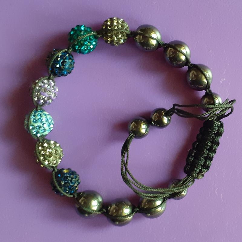 Дуже гарний браслет-шамбала з натурального каменю і 6 кольорових намистинок синього і блакитного кольору Оригінальна і вишукана прикраса