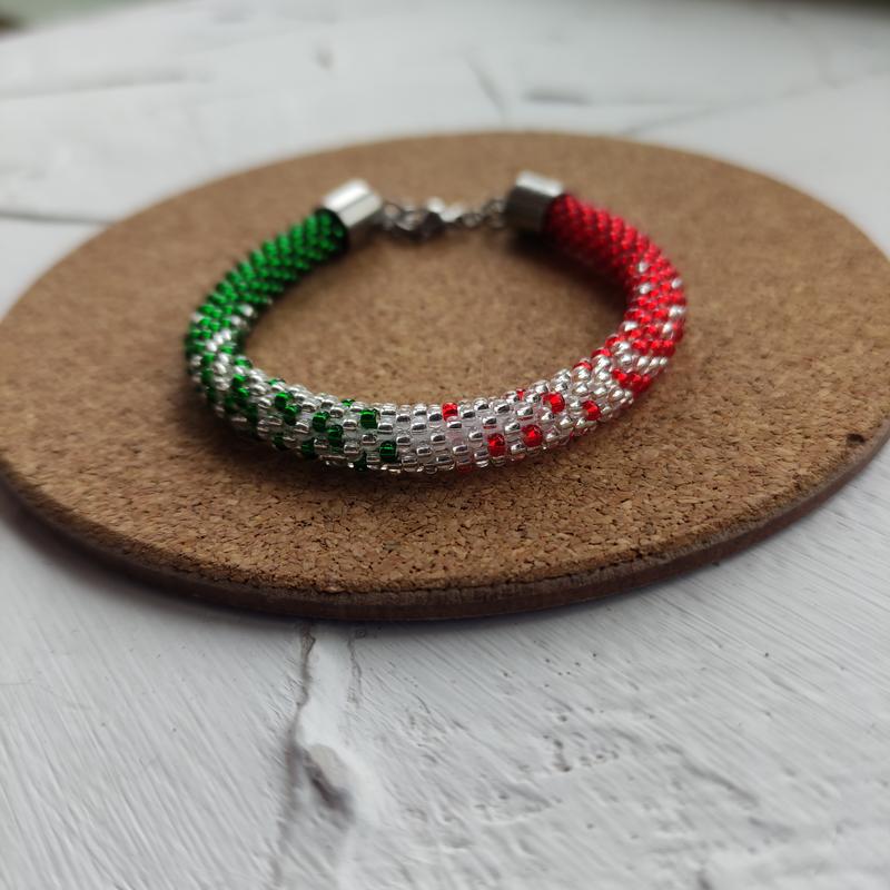Браслет жгут в зелено-красном цвете 💚❤️ Изготовлен из чешского бисера, фурнитура из нержавеющей стали. Длина с застежкой 18 см+ 4 см удлиняющая цепочка. Стоимость 150 грн