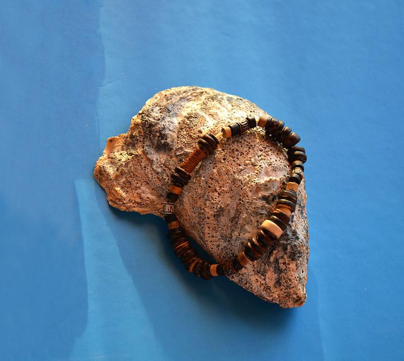 Этно браслет из натуральных материалов на резинке видимо handmade, кожа , дерево, кость привезен из Берлина