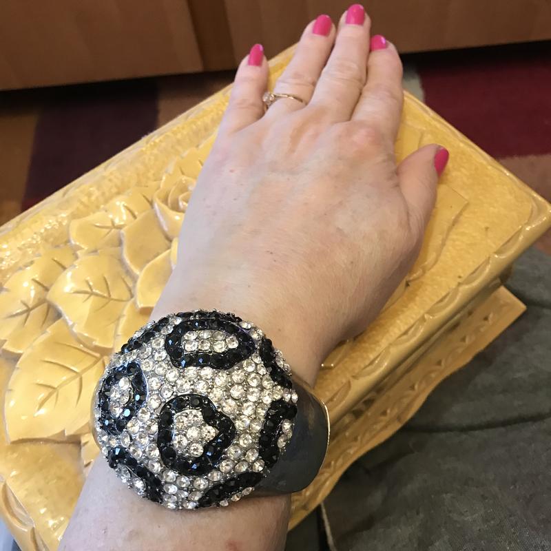 Кому шикарная БРАНЗУЛЕТОЧКА???с стразами металлическая на механическом замке, держится на руке надежно,объем запястья на фото 18 см,7 см диаметр