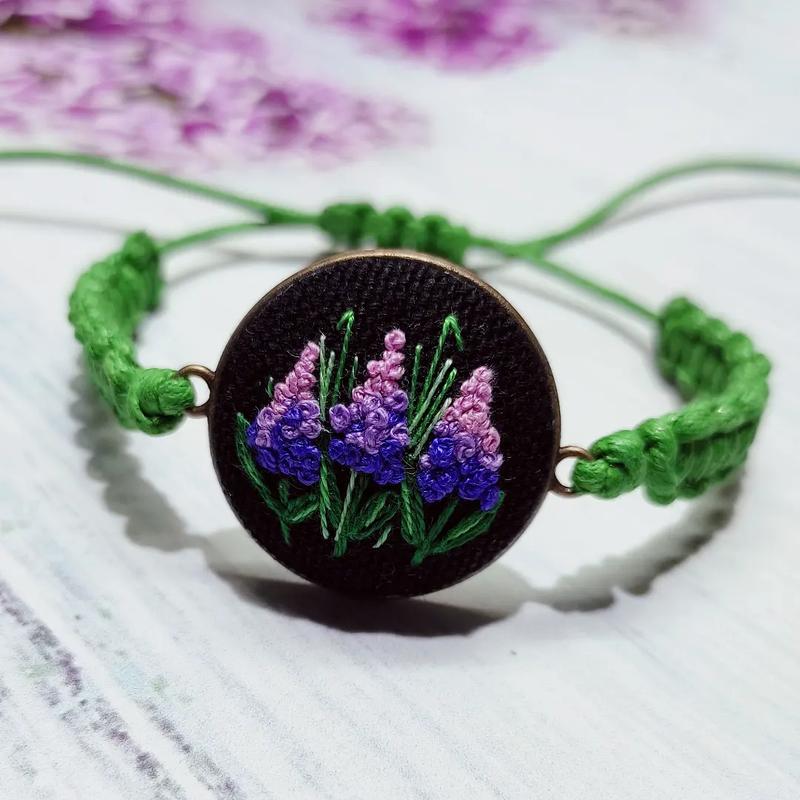 Браслет с вышивкой. Хлопковый шнур, подойдут на любую руку.