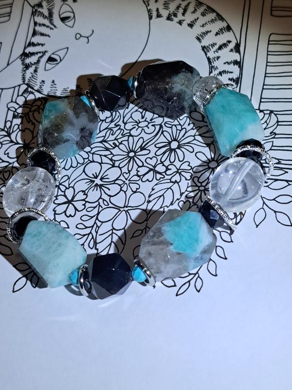 Натуральные минералы-амазонит, обсидиан, горный хрусталь)