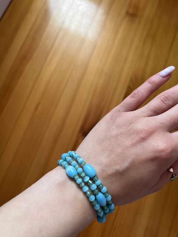 Спиральный браслет из голубых бусин
