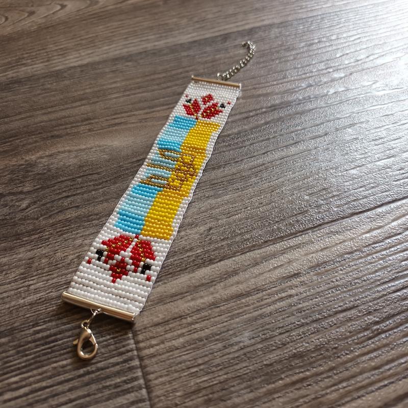Ручная работа Длина 16 см, Ширина 2.5 см Принт патриотический Можно сделать принт по Вашему желанию, вращайтесь) В наличии еще много браслетов