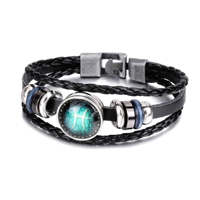 Модный универсальный браслет со знаками зодиака «Zodiac» станет прекрасным подарком, как мужчине, так и женщине. Элементы браслета выполнены из сплава и пластика, ремешок выполнен из эко-кожи и искусственной кожи, украшение стекло с символом. Размер браслета 20 см. Браслеты поступают регулярно. * Пожалуйста, уточняйте необходимый Вам знак. Дополнительно вы можете купить коробочку.