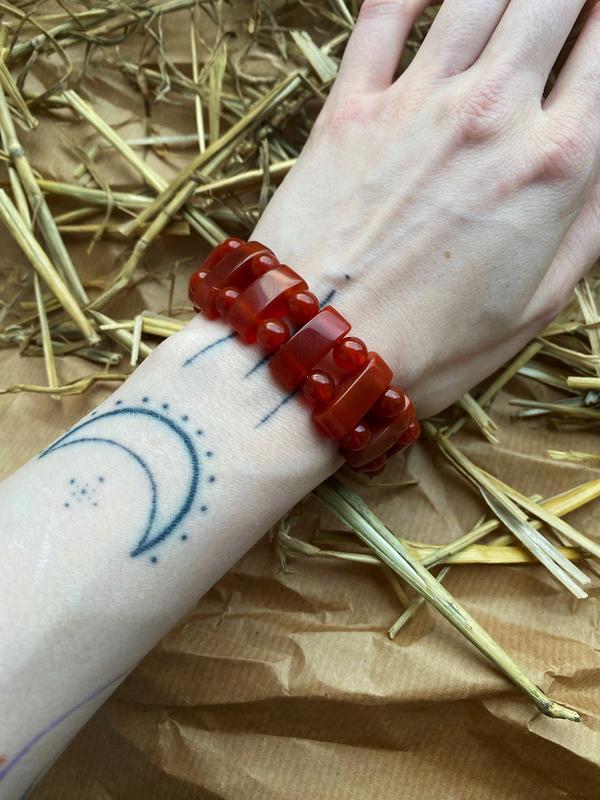 Браслет из натурального камня (красный агат). Насыщенного огненного цвета, красиво смотрится на ручке ☺️