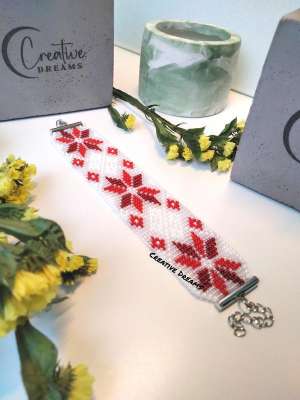Браслет ручной работы выполнен из качественного чешского бисера! Длина: 16.5 см(+6 см цепочка регулирующая длину),Ширина: 3.5 см. Более детализируйте, с радостью ответьте! Смотрите также другие наши объявления, оказывает большой ассортимент и хорошие скидки! Чтобы получить скидку - пишите!