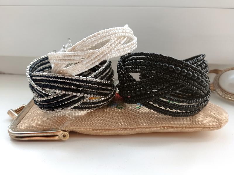 Чудові браслети з бісеру на якісній металевій основі, розмір регулюється) Браслетики продаються як набором, так і окремо) Чорний 200, чорно-срібястий 170, білий 150, набором набагато дешевше! + при купівлі ще якихось позицій з моєї Шафи зроблю додаткову знижку!