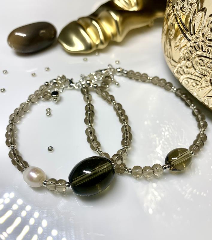 Неймовірні браслети з димчатим кварцом і перлами. Чудово поєднуються з іншими аксесуарами.