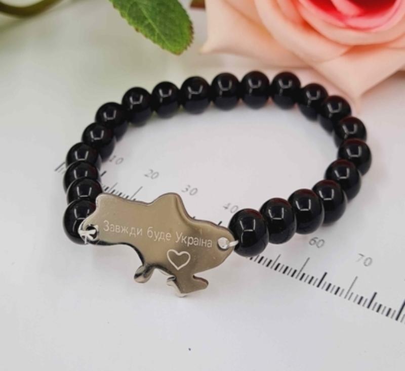 Браслет на резинке " всегда будет Украина" из черных бусинок Код товара 274376