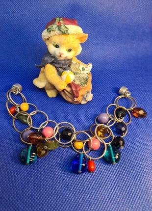 Замечательный, яркий браслет, по новогоднему разноцветный. Подвески качественный пластик и стекло напоминают леденцы. Застежка на магните. Длина 19 см. Основа цвета серебра. Легкий. Отправлю НП или Укр-почтой после предоплаты.