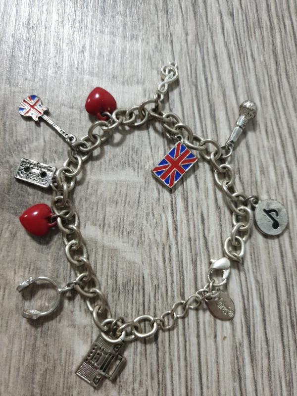 Браслет из белого металла, 10 тематических подвесок для тех, кто любит музыку. длина 16+4 см, состояние хорошее