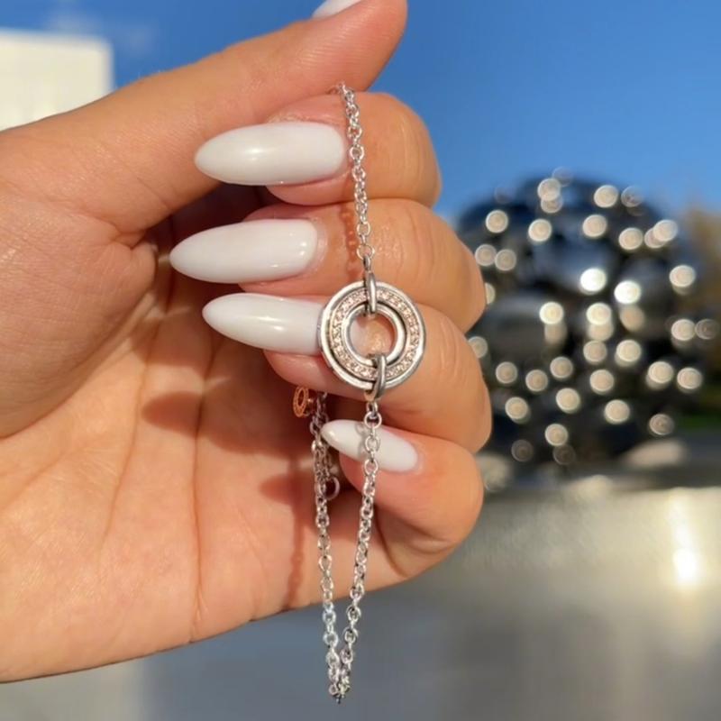 Срібний браслет двоколірний з паве Матеріал: срібло / срібло з позолотою Проба: S925 ALE / ALE MET Каміння: кубічний цирконій Можливо придбати комплектом. Розмір: 18 Відправка Новою Поштою **********************************************************