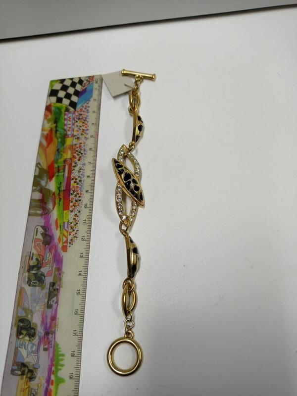 браслет золотистий,з білими камінцями і чорною емаллю.. дуже ошатний..