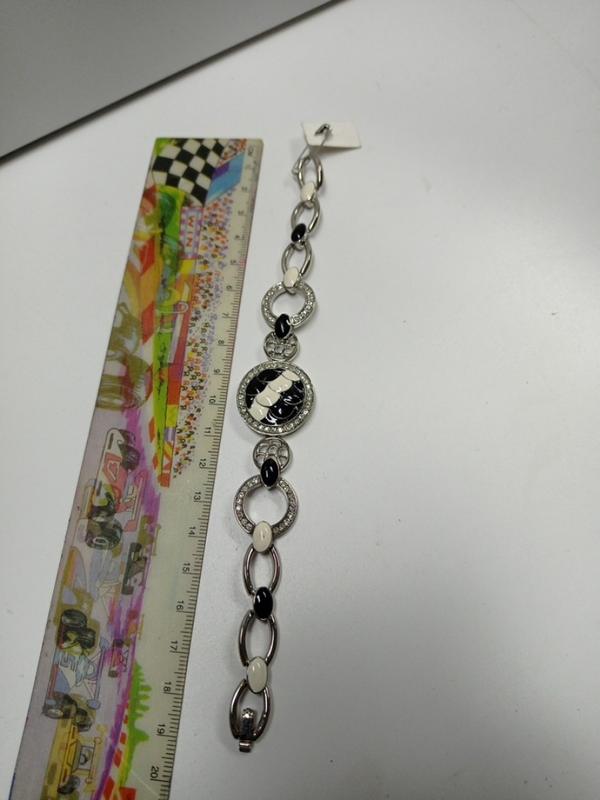 браслет з білого металу..прикрашений емалевими вставками та блискучими камінцями.. регулюється на кожне зяпястя..красивий