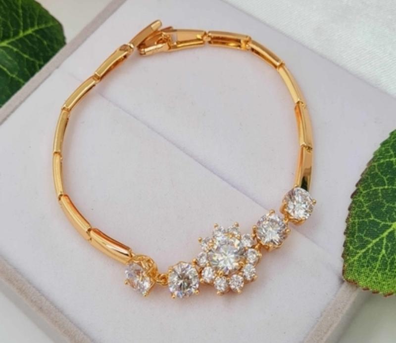 Браслет "Королевский" с крупными белыми и розовыми камушками, длиннее.19см, шир 2мм Xuping 18K Гэри уточнять наличие