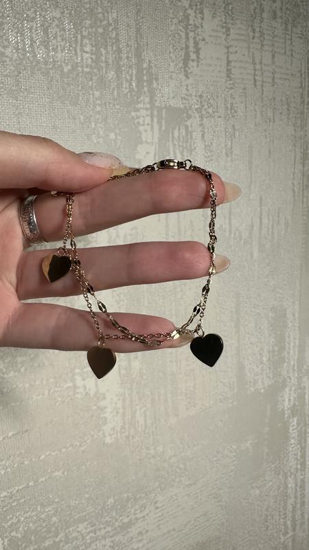 Браслет на руку двуйный с сердечками Цвет: золото Длина: 8,5 см Состояние: новый (Можно также приобрести капсулу-футляр как на фото, выглядит очень дорого и красиво (можно на подарок))🎁😍🐉