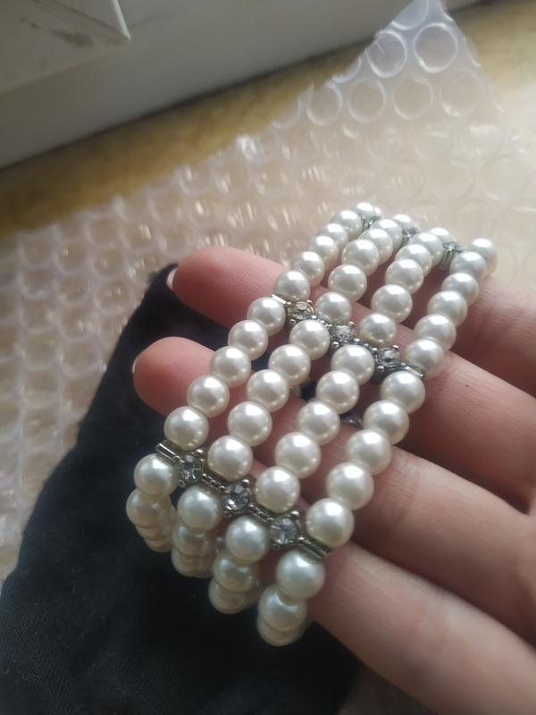 красивый браслет под жемчуг на резинке наілто рука 14см сидит по размеру не провисает по весу не прям воздушный немного увесистый Пересылаю после оплаты укр и новой почтой можно оформить через сайт после оплаты