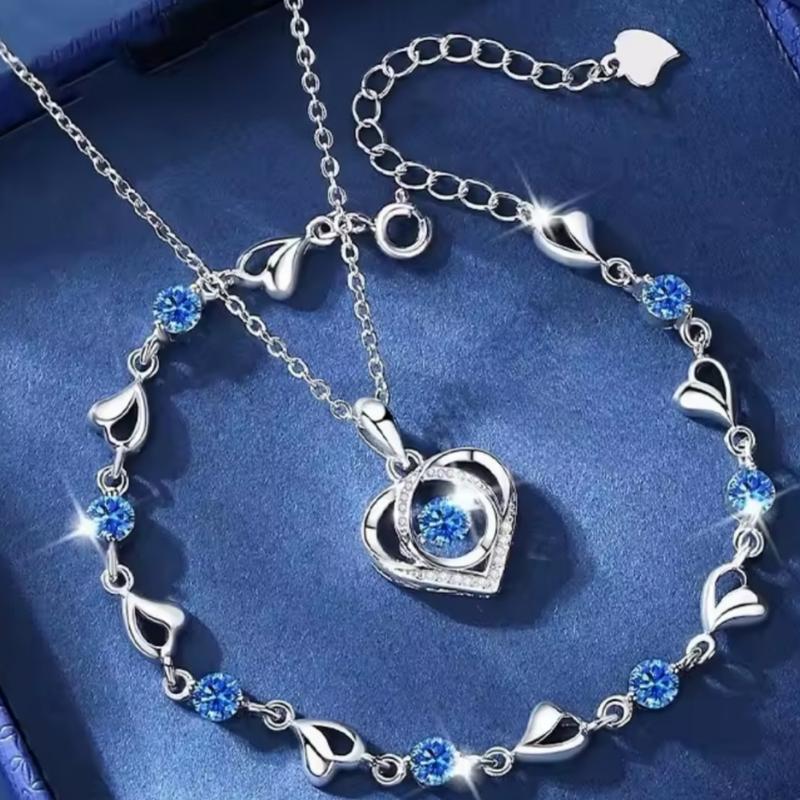 Нежный браслет с звеньями в виде листочков и голубых фианитов ,в длину 17 см + 5 см цепочка удлинитель ,с пробой на конце цепочки .Можно подобрать кольцо.