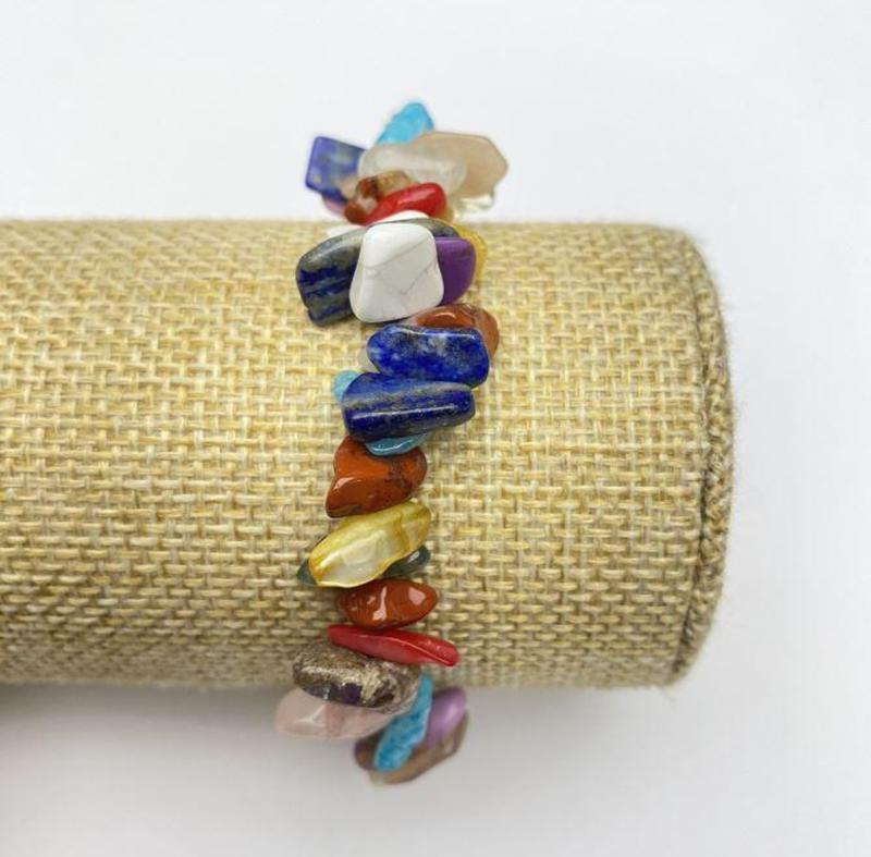 Браслет из натуральных камней ассорти крошка d-13х4-8х4мм на резинке обхват 18см