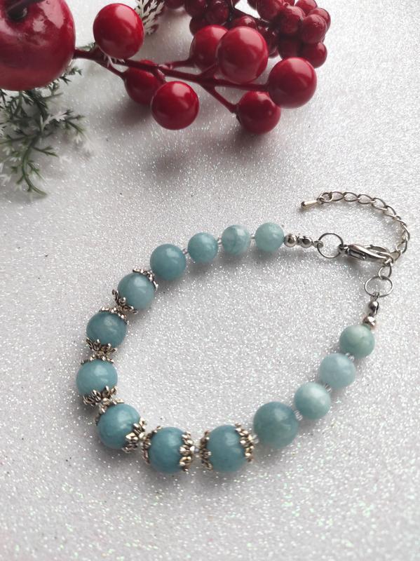 Браслет из аквамарина с удлинительной цепочкой.