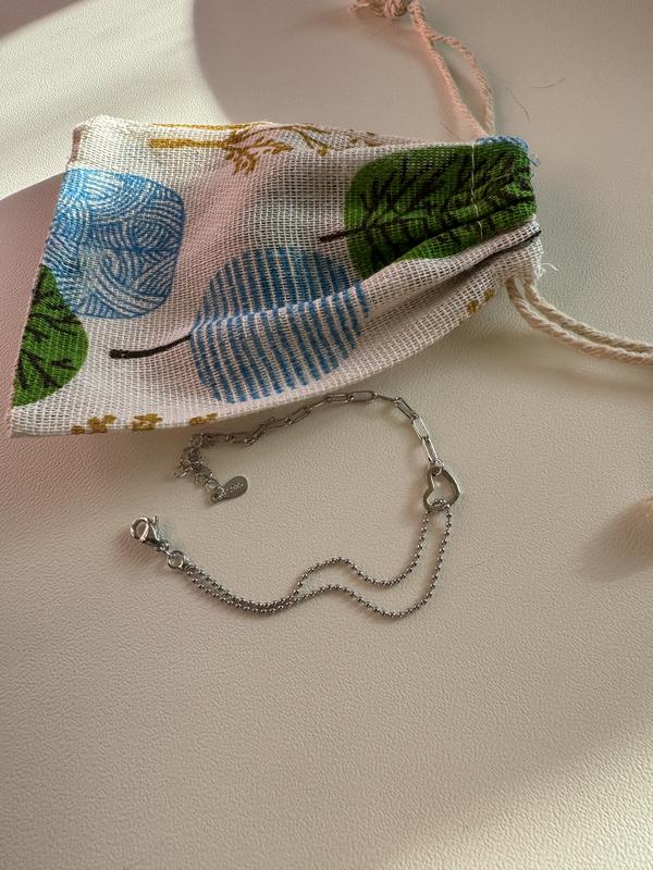 Браслет с сердечком и цепочкой идет размером one size, подойдет на любимую ручку, в индивидуальном льняном мешочке
