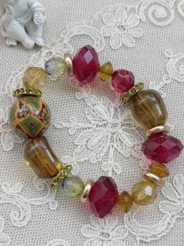 Браслет из люцитовых( пластик) бусин на силиконовой резинке. окружность 18 см. Состояние отличное.