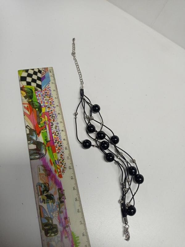 браслет на силіконових нитках з чорними перлинами..регулюється.