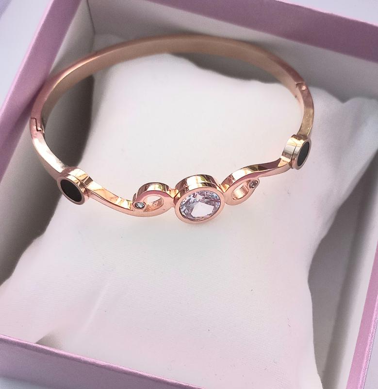Жесткий браслет из медичьей стали Xuping. Подходит на запястья 17-19 см. Гипоаллергенный сплав, не вызывает аллергию даже у маленьких деток. Не боится воды, можно купаться и носить не снимая. Долгое время сохраняет свой цвет и блеск.