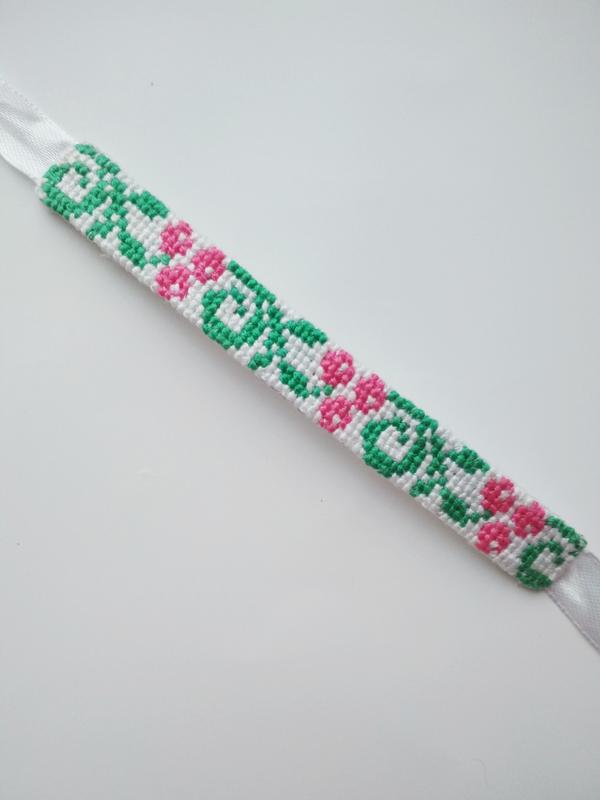 Ручная работа. Браслет изготовлен из канвы с ручной вышивкой в украинском стиле. С внутренней стороны браслет обшит натуральной кожей. Завязки из органзы либо атласных лент. Размер на заказ. Изготовление на заказ в другом цвете.