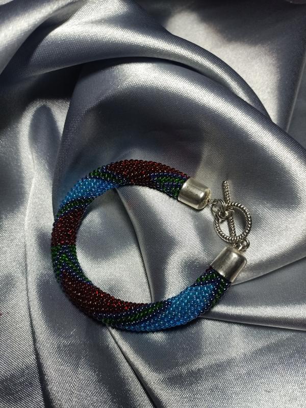 Браслет в технике жгут с Чешского бисера в наличии. Возможно изготовление в другом цвете и с другой застёжкой.
