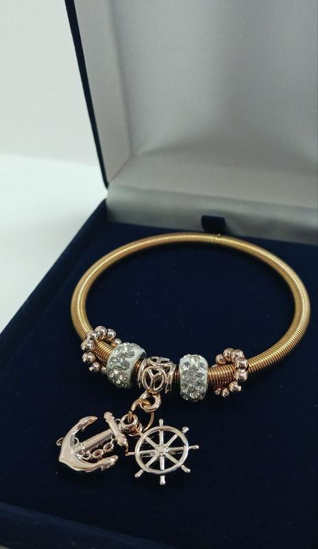 Яркий новый браслет с подвесками, морской на лето. Сделано сильной пружиной что очень удобно снимать и надевать, до 18 размера.